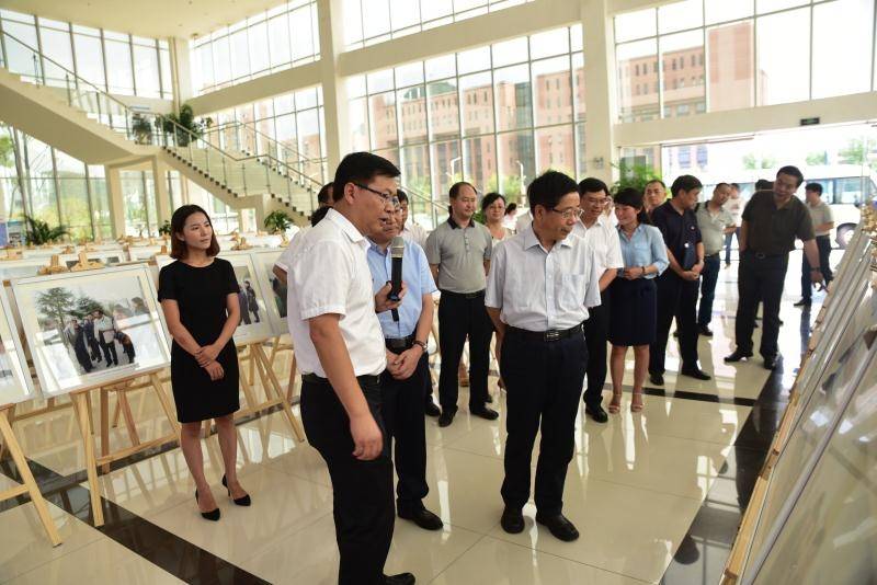 在學校攝影圖片展現場陳寶生部長 (cháng)仔細觀看 (kàn)習噼裡啪啦噼裡啪啦近平總書記視察學校時的圖片